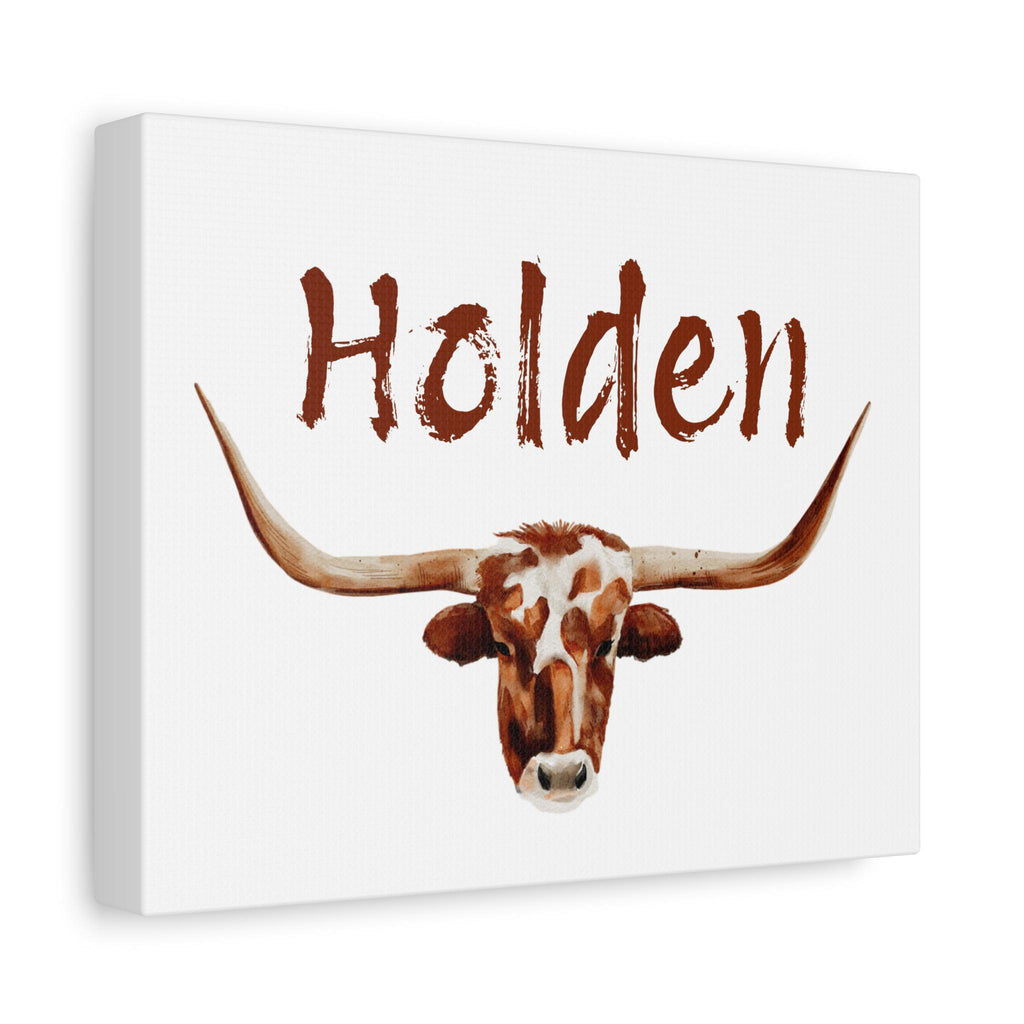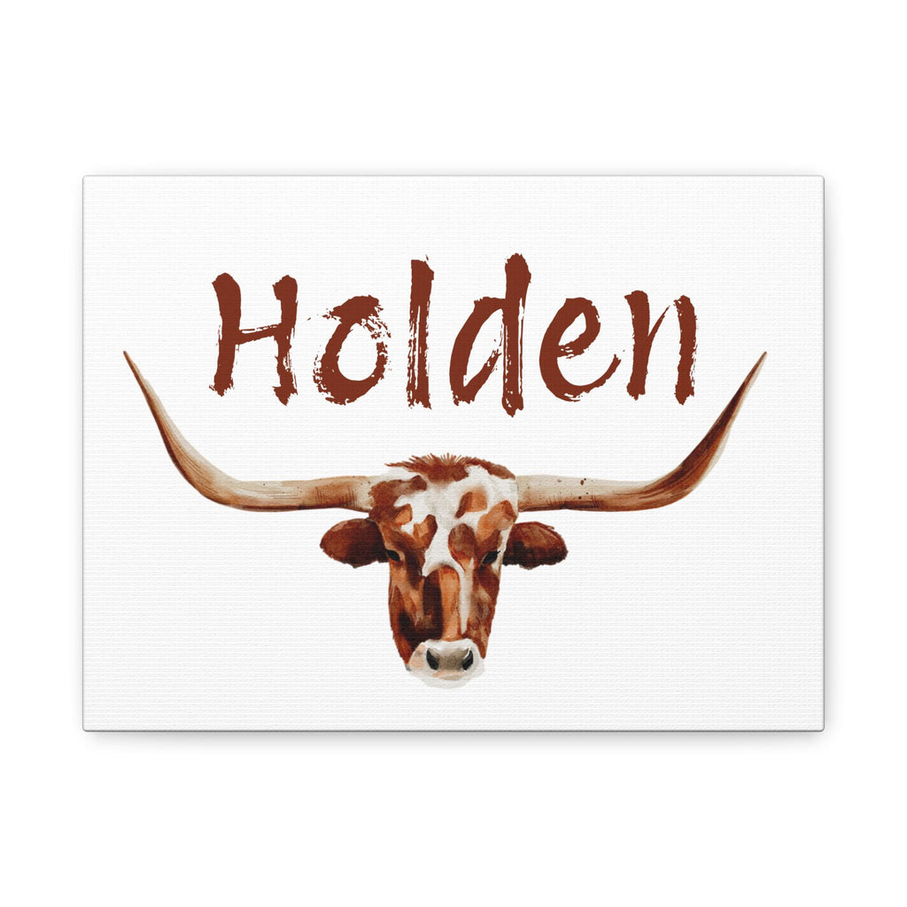 Add rustic charm to your little cowboy or cowgirl’s space with this Personalized Watercolor Longhorn Wall Art—a bold and beautiful piece that brings the wild spirit of the West indoors. Featuring a majestic longhorn in soft watercolor tones and your custom name above, this stretched canvas print makes the perfect focal point for a cowboy nursery, kids bedroom, or even a western-themed office or living space.