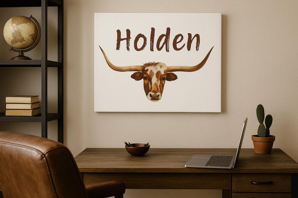 Whether you're creating a Texas-inspired nursery or updating a ranch-style kids room, this personalized canvas brings warmth, personality, and Western flair.
