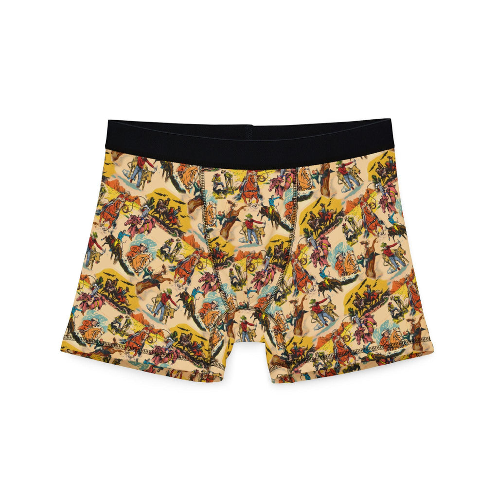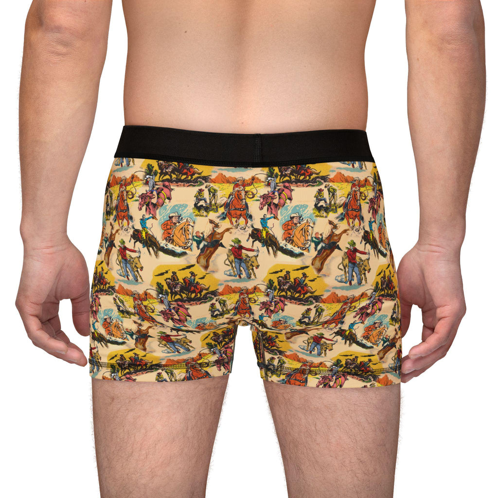 Ropin’, ridin’, and loungin’ in style 🤠 These retro cowboy boxers are here to wrangle your underwear drawer with bold vintage vibes! Featuring an allover cowboy print on a cheerful yellow background, these are a must-have for any guy with a wild side—or anyone who loves a good gift with personality.