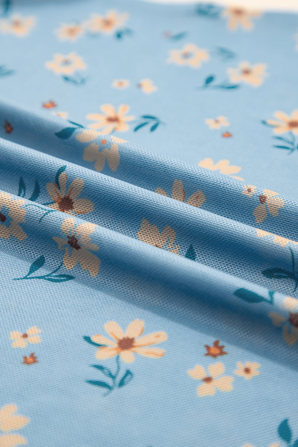 Bring a touch of Southern charm to your style with this dreamy floral mesh top. ššø Designed in a vintage-inspired sky blue with tiny allover flowers, itās sheer, sexy, and oh-so feminine. The slim fit, round neckline, and delicate lettuce trim make it the perfect piece for layering or wearing solo with high-waist jeans or skirts.