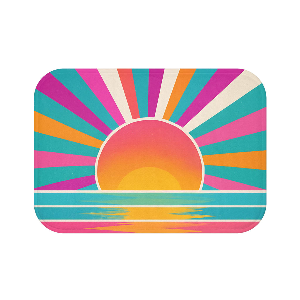 💖 Sunrise Bath Mat – Boho Turquoise, Pink & Yellow Bathroom Radiance Memory Foam Mat