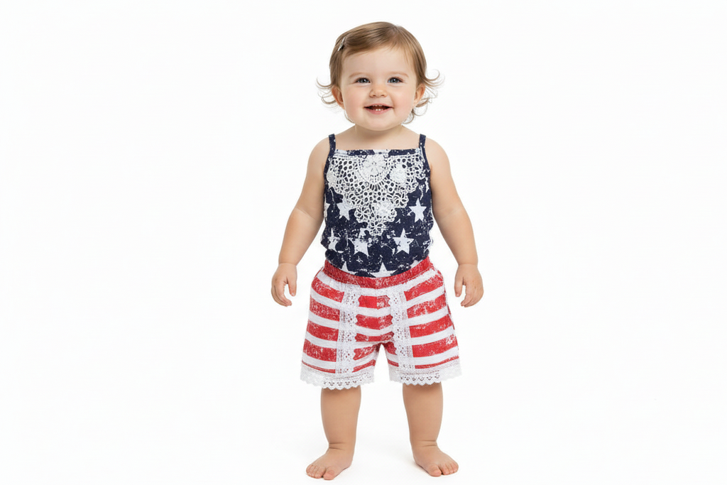 🎇 Whether she’s twirling under the fireworks or posing with sparklers, this romper is the perfect star-spangled look.