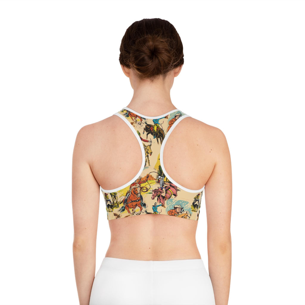 Vintage Cowboy Print Women's Sports Bra | Western Rodeo Activewear