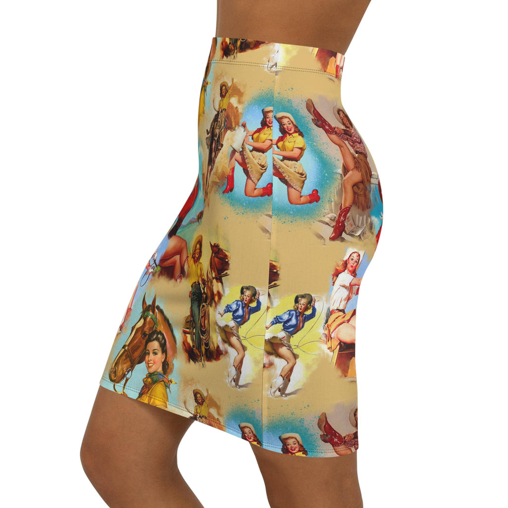 Channel your inner wild west fashionista with this Vintage Cowgirl Pencil Skirt 🤠✨ Designed for the bold, the free-spirited, and the trendsetters, this retro-inspired skirt features an allover cowgirl montage print that turns heads and starts conversations.
