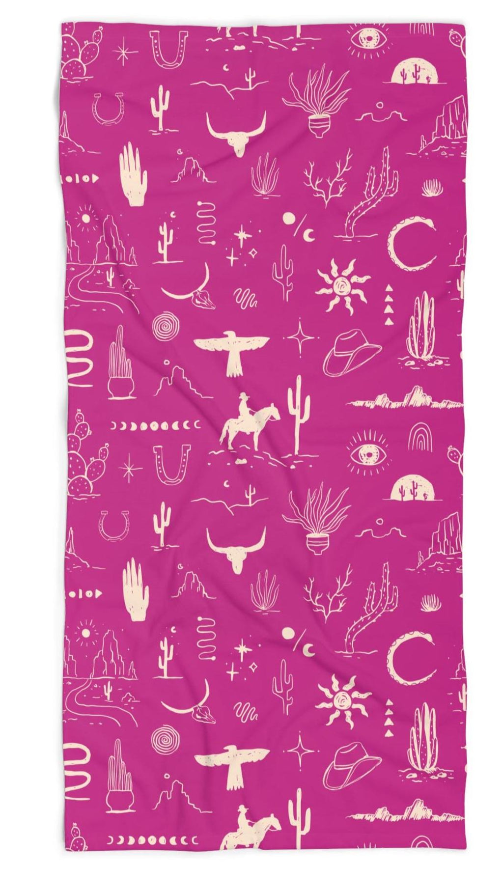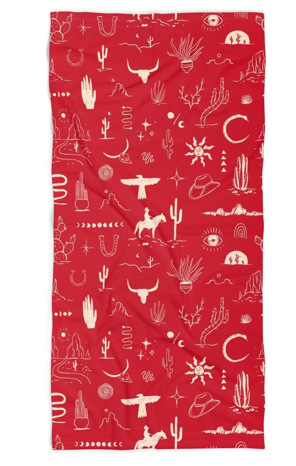 Available in 8 bold background colors, this towel is the perfect way to show off your Western spirit, from rodeo mornings to lazy river afternoons.