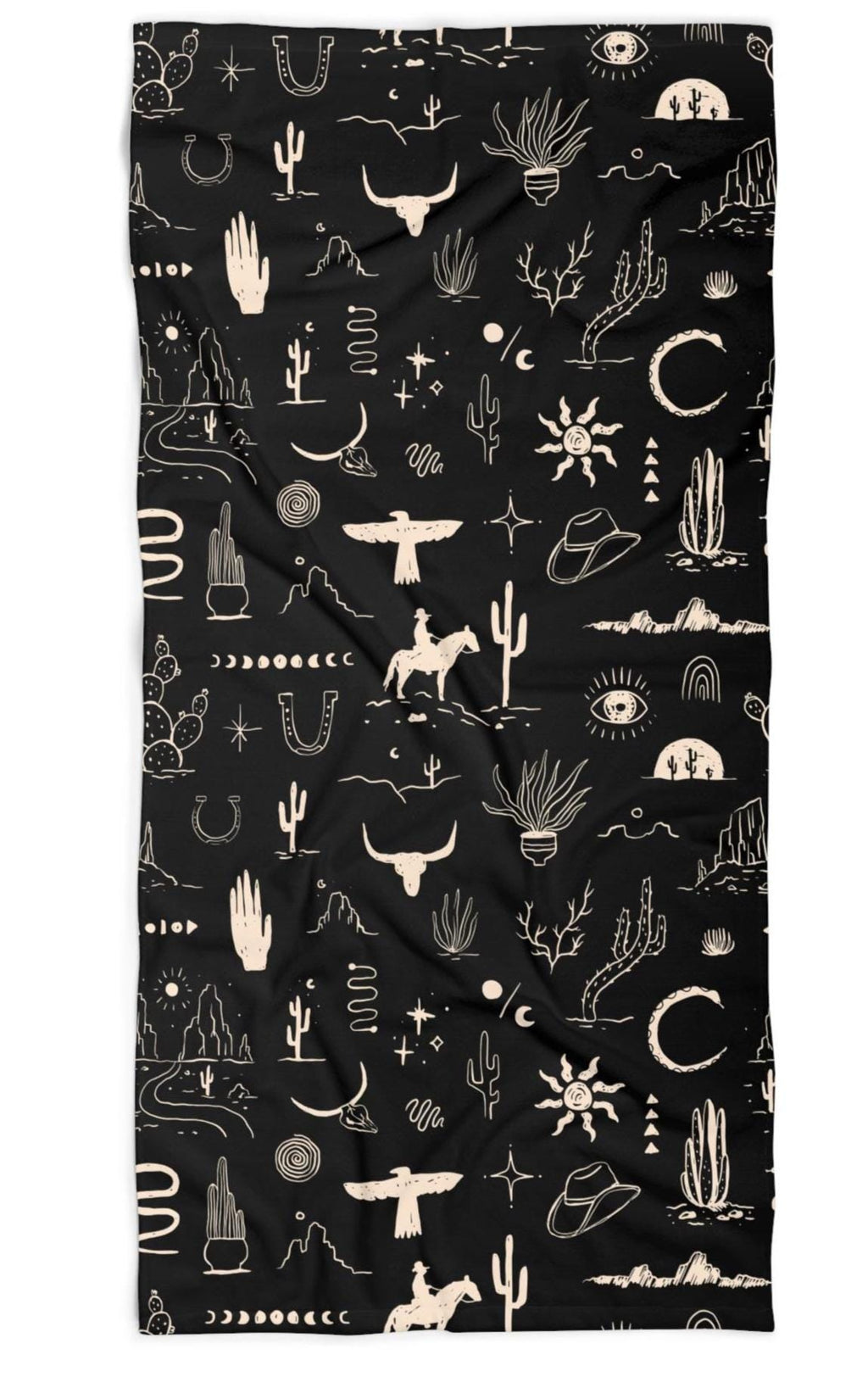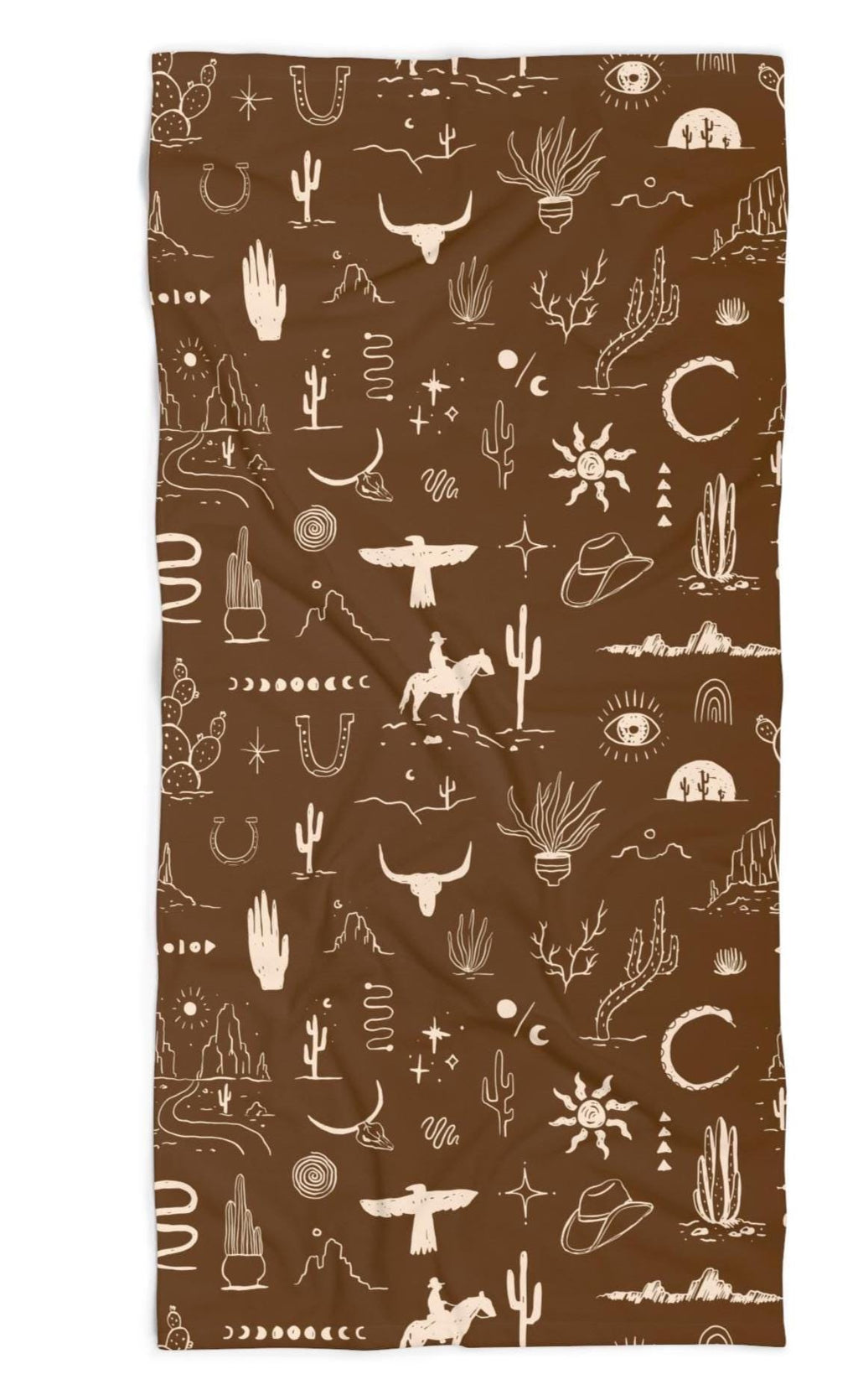 Yeehaw, bathtime just got a serious upgrade! 🤠🛁 Whether you're fresh outta the shower or headed to the beach, this Western-themed bath towel wraps you in cowboy cool. Featuring an allover print packed with sunbirds, snakes, cacti, cowboys, horseshoes, and thunderbirds—it’s everything you love about the wild West, now in towel form.