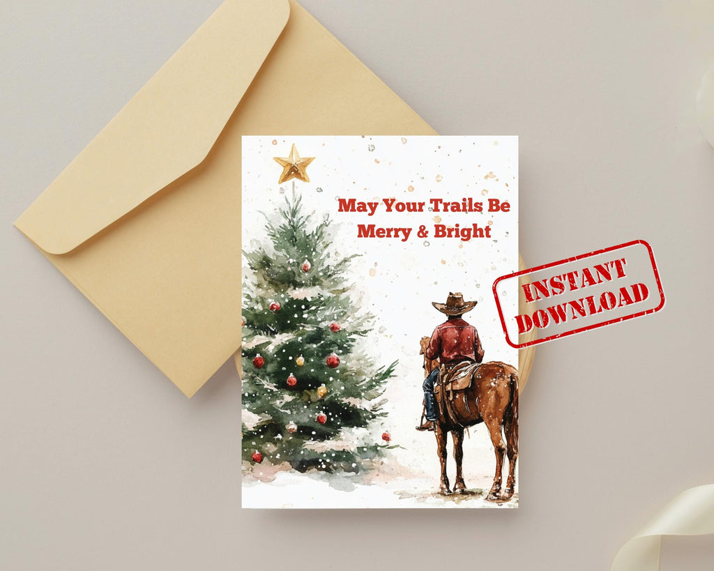 Western Cowboy Christmas Card: Merry Trails Design (PDF)