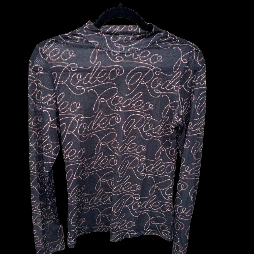 Turn heads on rodeo nights with this bold Western SHEER Shirt! This cowgirl shirt features a striking RODEO print on soft, breathable mesh—perfect for layering over your favorite Rodeo Nights T-shirt or wearing on its own. Whether you're at the arena or out on the town, this layering shirt adds the perfect Western edge to your outfit.