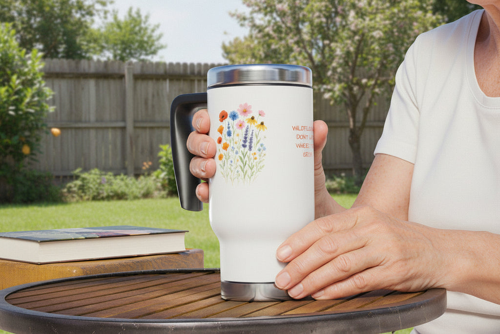 Bloom boldly wherever you go! 🌸 This floral stainless steel travel mug is the perfect blend of function and inspiration. Choose our featured quote—"Wildflowers don't care where they grow"—or personalize it with your own name, message, or favorite wildflower phrase. 🌼 It's a heartfelt gift that's as unique as the person holding it!