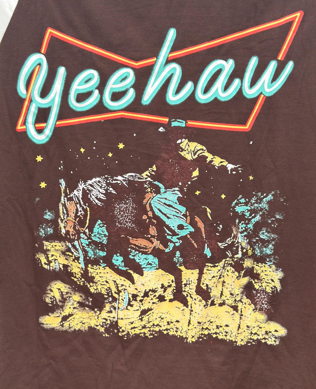 Stay stylish and show off your cowgirl spirit with the Yeehaw Raglan Sleeve Top—a fun and versatile addition to your Western wardrobe!